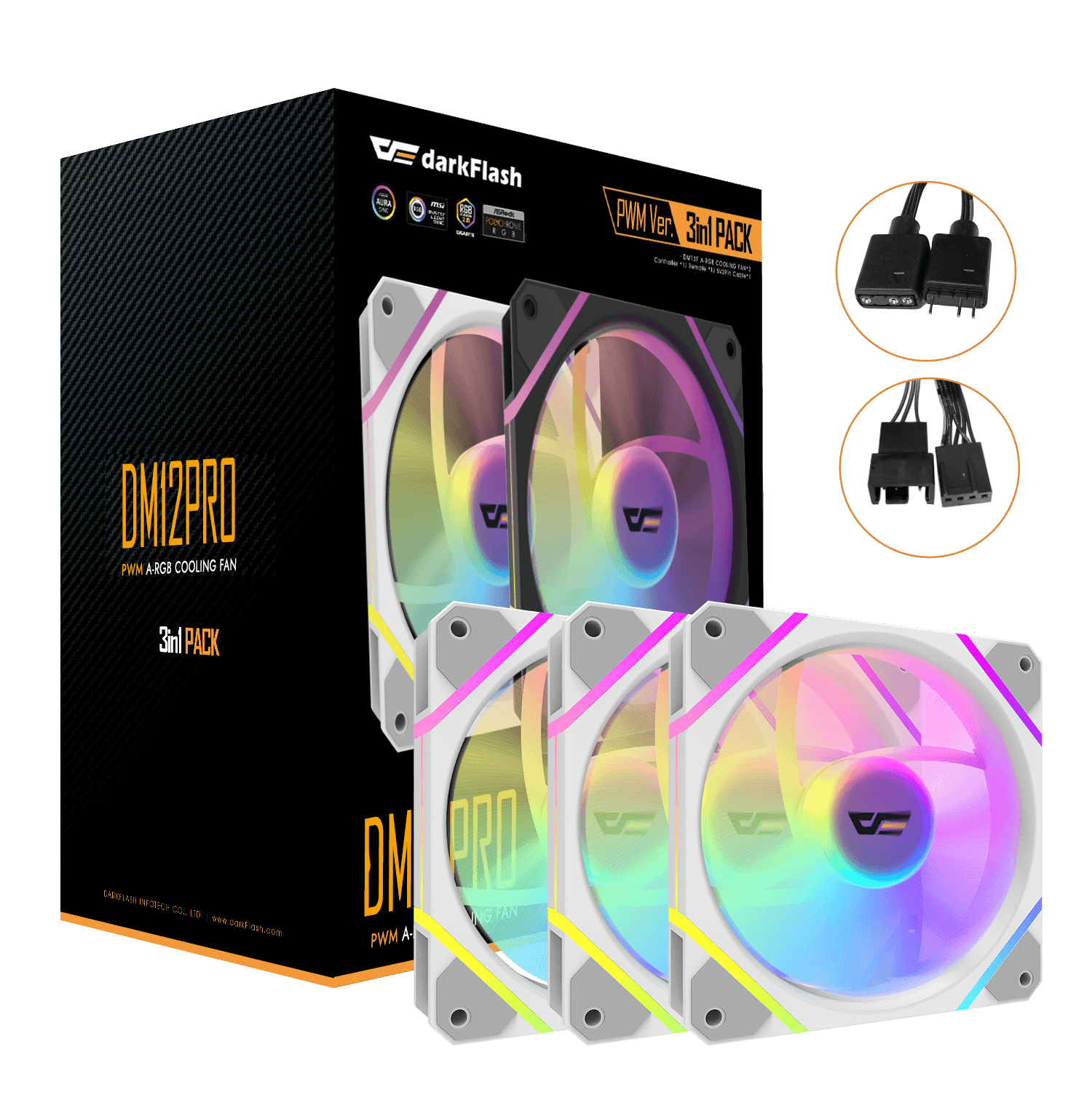 KIT 3 VENTILADORES AUXILIAR DM-12 120 PRO A-RGB BLANCO DARKFLASH